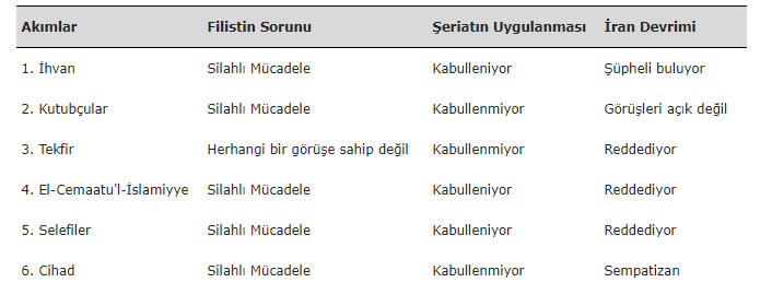 Kaynak: Mısır'da İslami Akımlar, Fecr Yay., Ankara, 1988, s. 180.