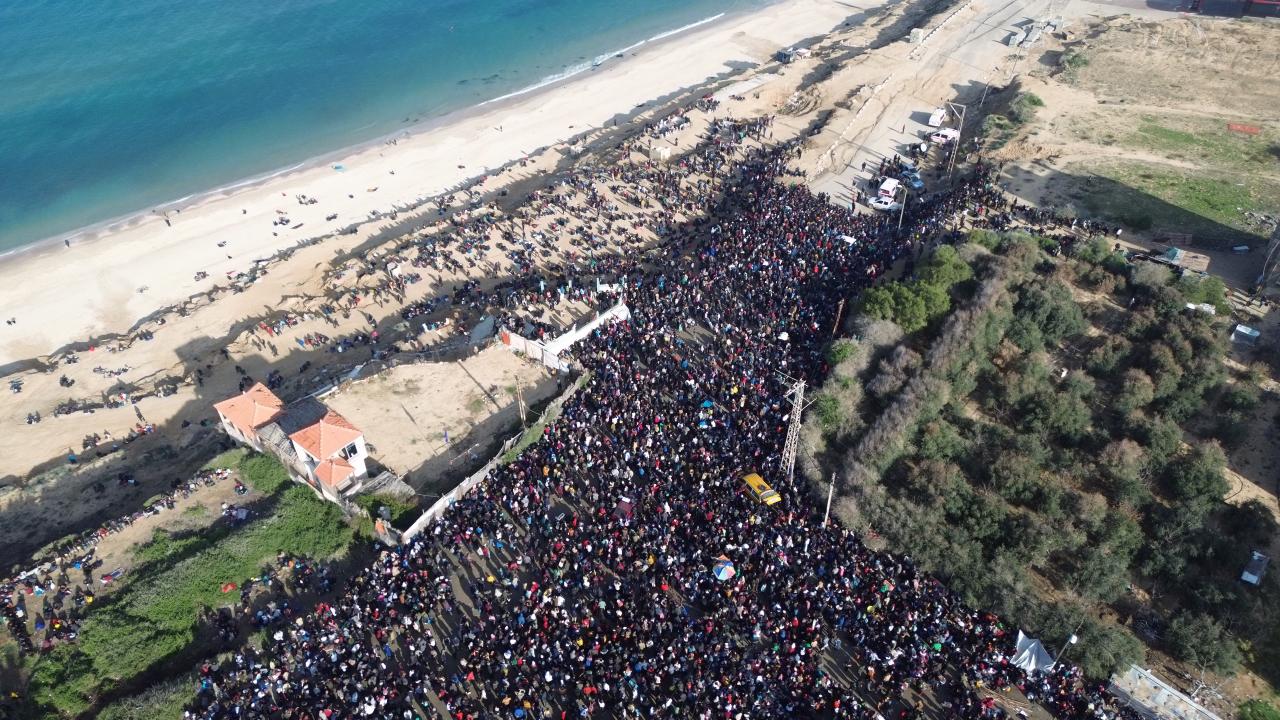 On binlerce Filistinli Gazze'nin kuzey-güney bağlantısını sağlayan, sahil boyunca uzanan Reşid Caddesi'nde toplandı.