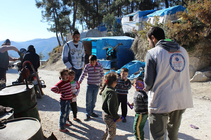 Türkmen dağındaki kardeşlerimize yardımlarınızı ulaştırdık. Türkiye sınırının sıfır noktasında binden fazla çadır ile gerçekten tam bir dram yaşanıyor. Çadır kentlerinin 2-3 km ilerisinde Rusların bombardımanı ise devam ediyor. Rusya ve Esed’in bombardımanından kaçan mazlum halka Öncü Nesil İnsani Yardım Derneği olarak gıda, su, battaniye gibi temel ihtiyaçlarını içeren yardımlarımızı dağıttık.