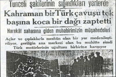4 Temmuz 1937 tarihli Cumhuriyet gazetesi, Tunç Eli operasyonunu "Kahraman bir Türk çavuşu tek başına koca bir dağı zaptetti" başlığı altında bu yüzden şöyle haberleştiriyordu: "Açlar ve çıplaklarla meskün bir yer medenileştiriliyor, geriliğin ana merkezi olan bu muhitte şimdi Türk motörlerinin uğultusu birbirine karışıyor." Hareket sahasına giden Cumhuriyet muhabirinin izlenimleri böyle. Dersim harekatını yere göğe sığdıramayan Cumhuriyet gazetesinin kurucusu ve başyazarı Yunus Nadi'nin yorumları ise şöyle: "Bu haliyle hükümet, Tunceli'nin dağlı bedevilerine şu hakikatı anlatıyor ki... Ya bu deve güdülecek, ya bu dağdan gidilecek... Türk vatanın ortasında Dersim bir lekeydi."