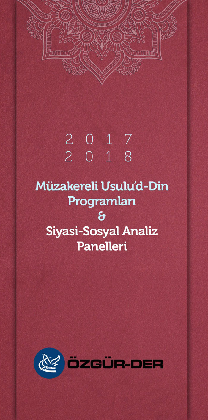 Özgür Düşünce ve Eğitim Hakları Derneği ÖZGÜR-DER’in 2017-2018 aylık panelleri “Müzakereli Usulu’d Din Programı” ve “Siyasi Analiz Panelleri” iki ana başlık altında yapılacak.