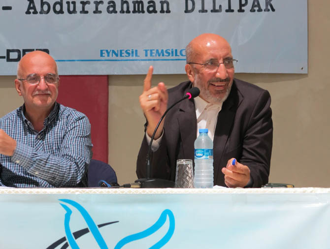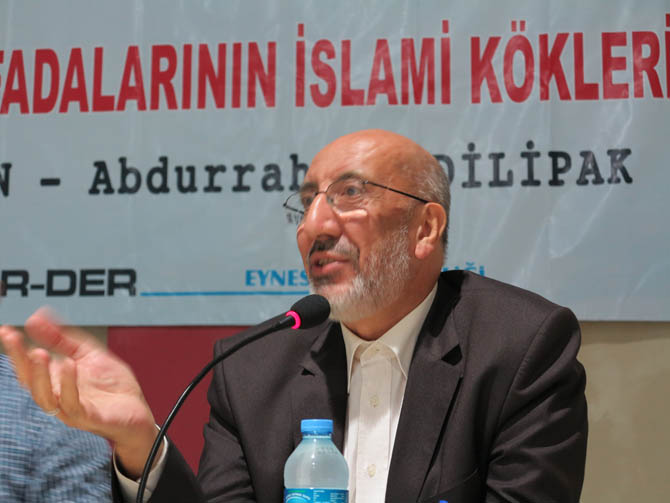Dilipak sözlerine önce bakış açılarımızı değiştirmemiz gerektiğinden bahsederek başladı. Bu coğrafyaya Ortadoğu diyebilmemiz için haritaya İngiltere’den bakmak gerektiğinden, bir kere tanımlamanın yanlış olduğundan bahsetti. One minute, Mavi Marmara gibi tevafukların ümmetin ümitlerini dirilttiğine değinen Dilipak, batının gelinen süreçte üç konuda değişikliğe gitmek istediğinden bahsetti. 1.) Rejimler değişecek, 2.) Sınırlar değişecek, 3.) Yönetici kadrolar değişecek.