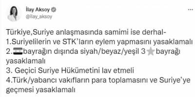 6’lı muhalefetin seçim komisyonu üyesi İlay Aksoy katil rejimin sözcülük vazifesini de üstlenmiş!