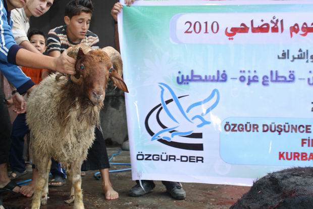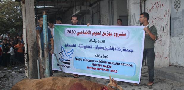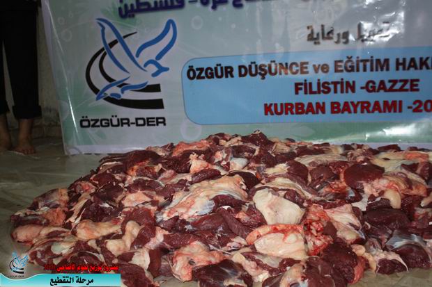 Özgür-Der ve İLKAV mensuplarının bir bölümü her yıl olduğu gibi bu yıl da kurbanlarını Gazze'de kestirdi.