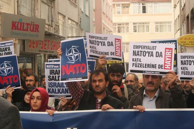 Özgür-Der mensupları bugün 13.00'te Fatih Postanesi önünde 19-20 Kasım tarihlerinde Lizbon'da gerçekleştirilecek NATO Zirvesinde nereye kurulacağı karara bağlanacak olan "NATO Füze Kalkanı"nın Türkiye'ye kurulmaması çağrısı içeren bir protesto eylemi düzenlediler.