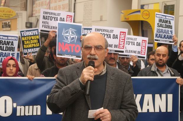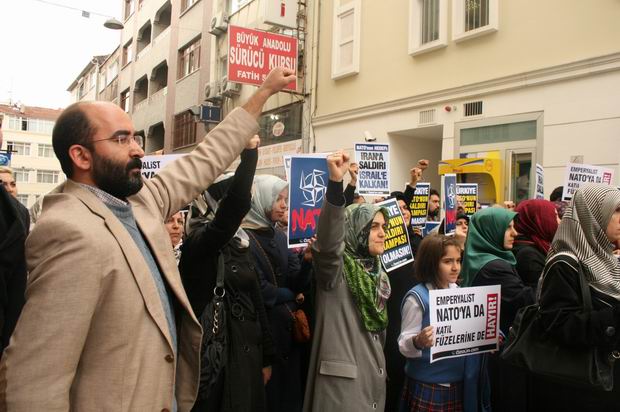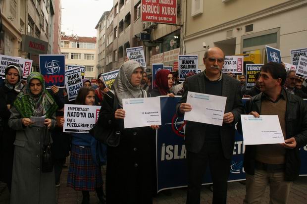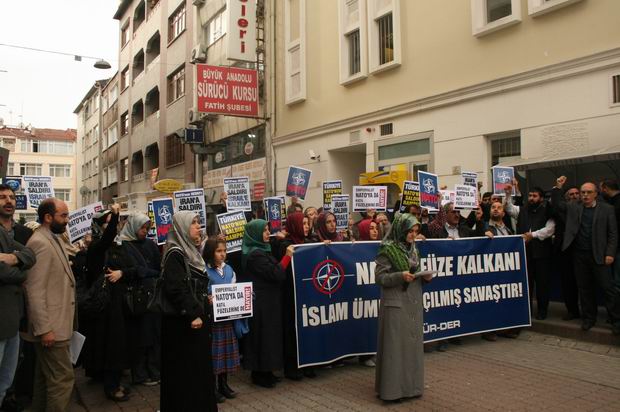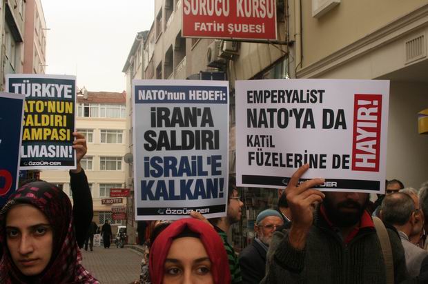 "NATO'nun Füze Kalkanı İslam Ümmetine Açılmış Bir Savaştır!" yazılı bir pankartın açıldığı eylemde "NATO'nun Hedefi: İran'a Saldırı, İsrail'e Kalkan!", "Emperyalist NATO'ya da Katil Füzelerine de Hayır!", "Türkiye NATO'nun Saldırı Rampası Olmasın!" yazılı dövizler taşındı.