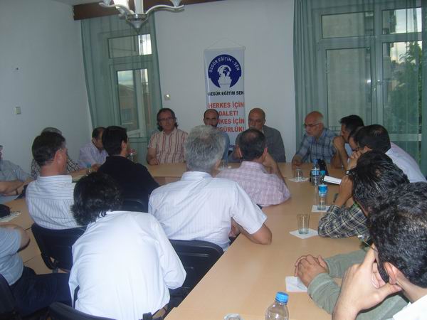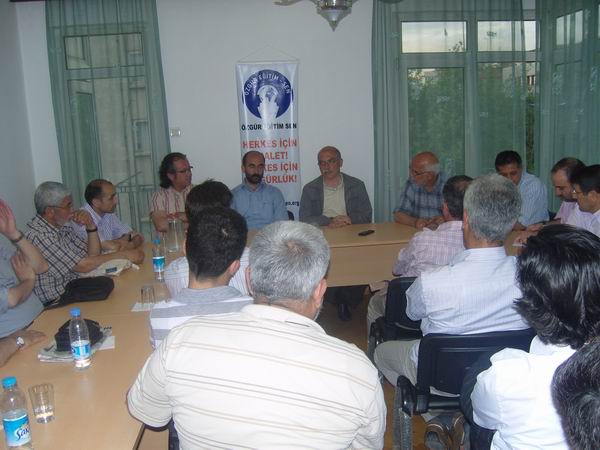 Korsan İsrail'in Gazze'ye yardım amaçlı yola çıkan Mavi Marmara Gemisine düzenlediği kanlı baskının ardından gemide bulunan ve tutsak edilen Özgür-Der genel başkanı Rıdvan Kaya, yine aynı gemide bulunan Özgür-Der Genel Sekreteri Musa Üzer ile Haksöz dergisi sahibi Hamza Türkmen Pazartesi günü Özgür Eğitim Sendikasının davetlisiydi.