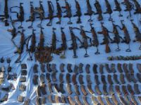 Cephanelikte ele geçirilen 27 kalaşnikof ve çok sayıda mühimmatın bakımlarının yapıldığı ve tekrar kullanılmak üzere streç filmlerle sarılarak saklandıkları belirlendi.