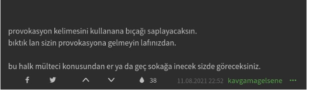 Ekşi Sözlük’te son günlerde paylaşılan içeriklerde “Ayaklanmaya çağrı” ve “Suriyeliler ve Afganlar defolsun”, “Sokaklara dökülmek için ne bekliyorsunuz”, “Halk sokağa inecek” naraları atılırken, Aykırı adlı haber sitesinde de benzer bir durum sözde haber adı altında paylaşılan içeriklerde kendisini açığa çıkarıyor.