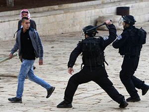 Siyonist İsrail polisi, Filistinlilerin Mescid-i Aksa'ya girmesine engel oluyor.