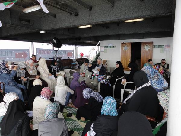 Türkiye'deki Müslüman kamuoyunun yakından tanıdığı Ramazan Kayan, Gazze'ye doğru onurlu yolculuğuna devam eden "Mavi Marmara" gemisinde Arap ülkelerinden gelen hanımlarla bir sohbet düzenledi. Filistin, Lübnan, Ürdün, Suriye, Yemen, Kuveyt, Katar, Cezayir, Fas gibi Arap ülkelerinden gelen hanım kardeşlerimiz, hocamızın ilmî sohbetini büyük bir dikkatle dinleyerek kendisinden istifade ettiler. Ramazan Hoca'nın konuşması, yanında bulunan tercüman vasıtasıyla cümle cümle Arapça'ya tercüme edildi. Akidevî ve ilmî konularda aydınlatıcı ve doyurucu bilgiler sunan Ramazan Kayan hocamıza Arap hanım kardeşlerimiz çeşitli sorular da sorarak merak ettikleri konularda bilgi sahibi oldular. Ramazan Kayan hocamızın Arap ülkelerinden gelen hanımlarla düzenlediği sohbet programı üç saate yakın sürdü.