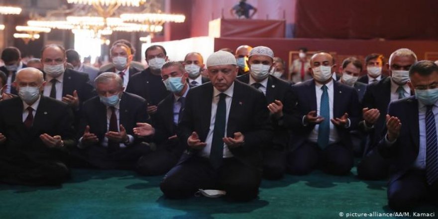 Ayasofya’nın camiye dönüştürülmesinin ardından, devlet erkanının katılımıyla kılınan ilk Cuma namazı Alman basınında da büyük yankı uyandırdı. Öne çıkan görüş, Türkiye’nin seküler değerlerden uzaklaştığı yönünde.