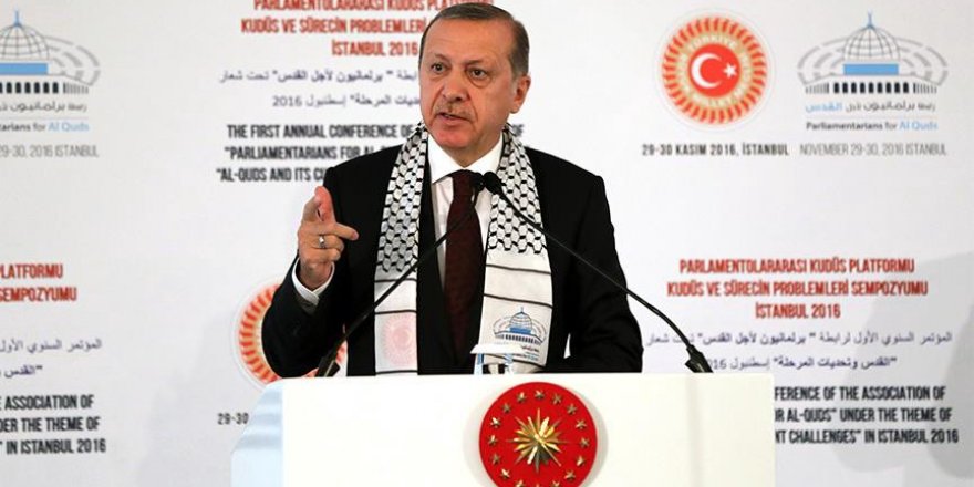 Cumhurbaşkanı Erdoğan, "İsrail son 50 yıldır kasıtlı bir şekilde Kudüs'teki İslam mirasının izlerini silmeye çalışıyor. Silemeyeceksiniz!" dedi.