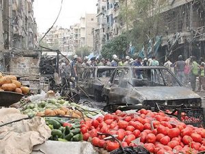 Esed rejimi, savaş uçağıyla Halep'te direnişçilerin kontrolünde bulunan Şear mahallesindeki çarşıya "Fil" adı verilen füzeyle saldırarak 25 sivili katletti!
