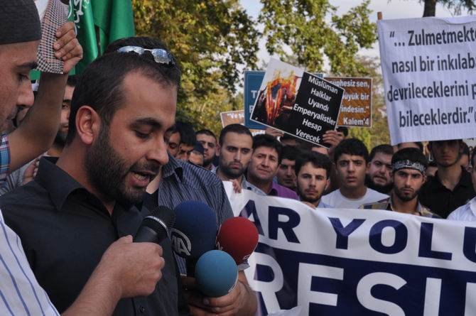 Basın açıklamasının ardından Cemal Çınar tarafından yapıtırılan dua ile son bulan eylemde “Kahrolsun Amerikan Emperyalizmi!”, “Şehid Usame Yolun Yolumuz!”, “Muhammed Canımız, Fedadır Canımız!”, “Peygamberin Ümmeti, Kabul Etmez Zilleti!” vs sloganlar atılırken sık sık Tekbir getirildi.