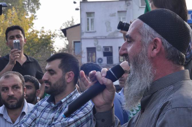 Eylemde konuşma yapan Hamza Er, Müslümanların düşünce özgürlüğü adı altında İslami değerlerine laf söyletmeyeceğinin altını çizdi. Er, ayrıca bu tip hakaret içerikli saldırıların dışında Esed’in Suriye’de, İsrail’in Filistin’de, ABD’nin Afganistan’da yaptığı katliamları hatırlatarak bu tip olaylarda da duyarlı olmamız gerektiğini ifade etti.