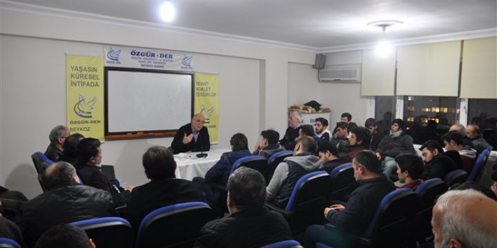 Özgür-Der Beykoz Şubesi'nin aylık seminer programları sürüyor. En son, 4 Ocak Çarşamba akşamı dernek binasında gerçekleştirilen seminerin başlığı; 'Yerel ve Küresel Sistem Karşısında Müslümanlar', konuşmacısı da Özgür-Der Genel Başkanı Rıdvan Kaya idi.