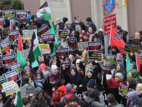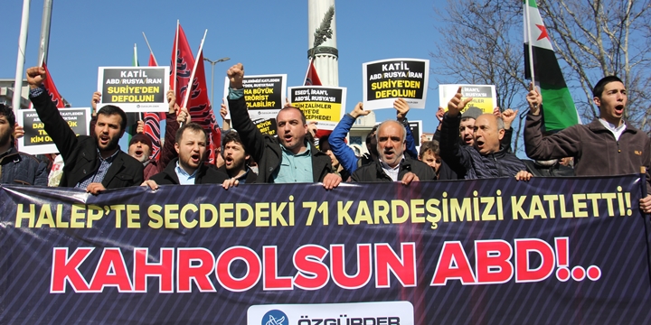 Halep’te ABD tarafından gerçekleştirilen ve en az 71 kişinin hayatını kaybetmesine yol açan saldırı İstanbul’da, Saraçhane Parkı’nda protesto edildi.