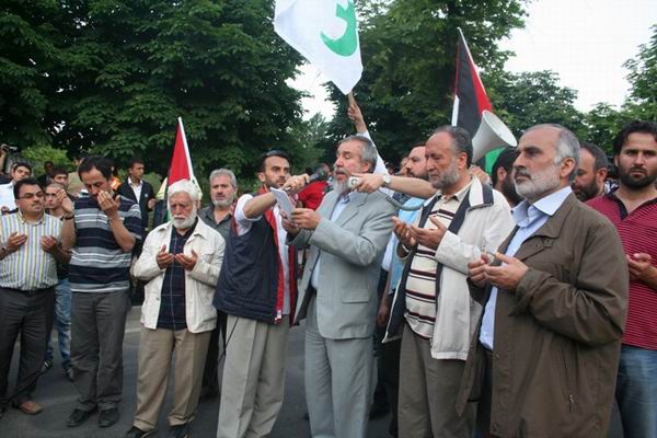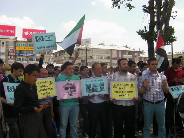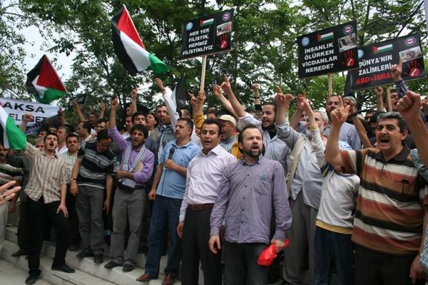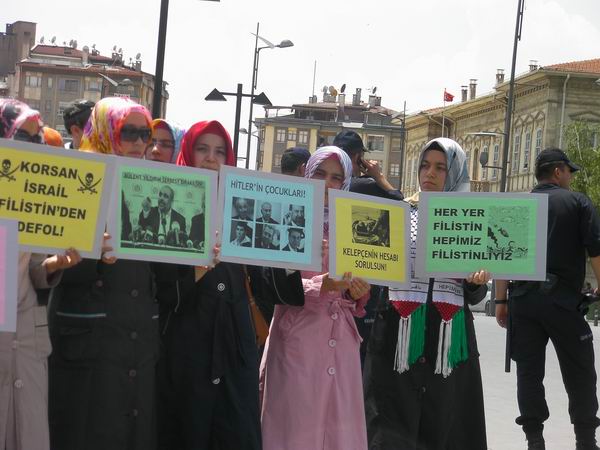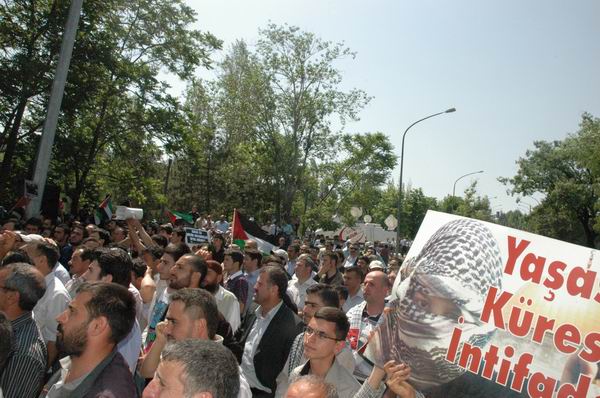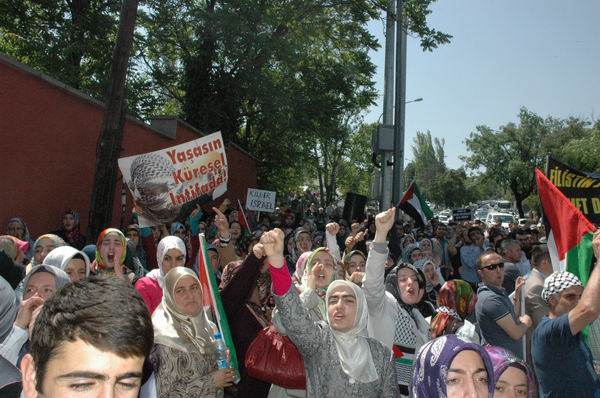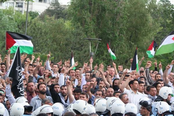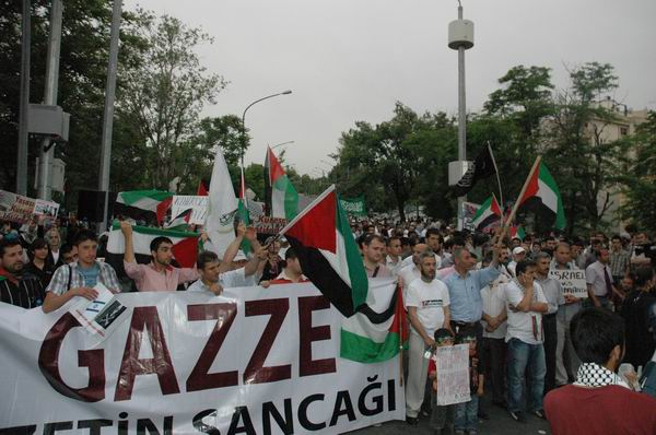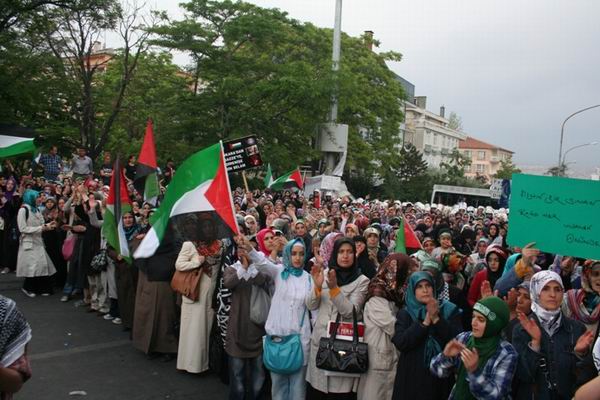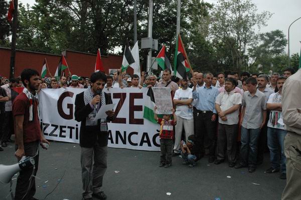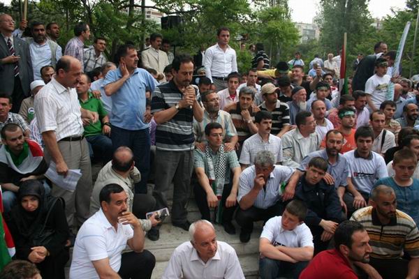 İsrail'in, Gazze'ye yardım götüren gemilere saldırısı Ankara Filistin Dostları Platformu Gönüllülerinde protesto edildi. Protesto gösterisine çok sayıda Müslüman katılırken kalabalık grup sık sık sloganlar attı.