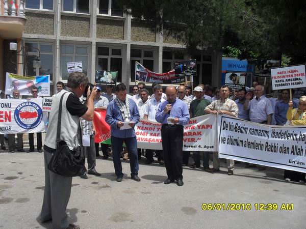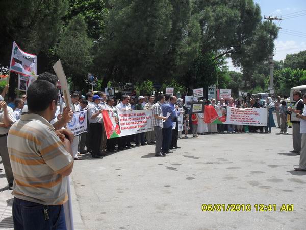 Akhisar Özgür-Der adına konuşan Hüsamettin Yılmaz yardım gemileri hakkında bilgi verdikten sonra, İsrail'in operasyonun hukuksuz olduğunu bu operasyonda şehitler verdiğimizi bir çok kardeşimizin yaralı olduğunu belirtti. AK Parti hükümetinin acil biçimde tutuklanan, gözaltına alınan kardeşlerimizi kurtarması gerektiğini vurguladı. Son olarak müslümanların sorumluluklarına değinen konuşmacı katılanlara gösterdikleri duyarlılıktan ötürü teşekkür etti. Basın bildirisini Akhisar AGD'den Muhammed Çaltı okudu. Bir çok döviz ve pankartın açıldığı eylemde ''İnsanlık onuru siyonizmi yenecek'', ''Katil İsrail hesap verecek'', Katil İsrail Filistin'den defol'', ''Gazze'ye selam direnişe devam'' gibi sloganlar atıldı. Aziz Karaboğa'nın yaptığı duadan sonra eylem sona erdi.