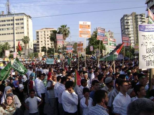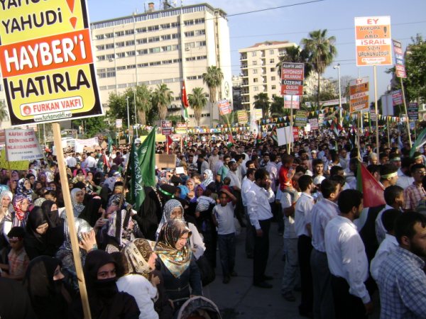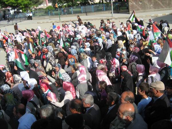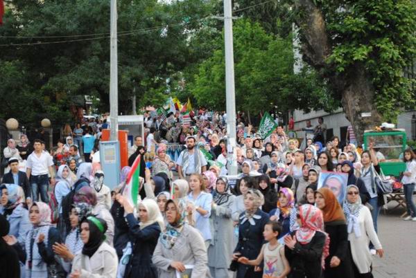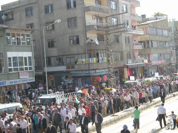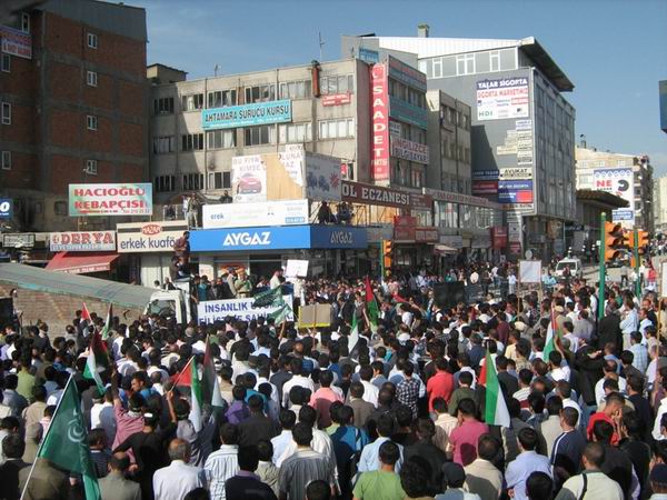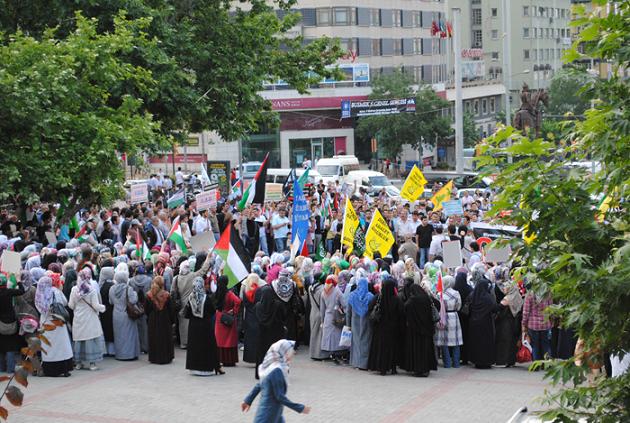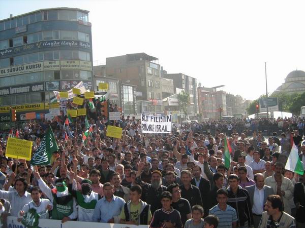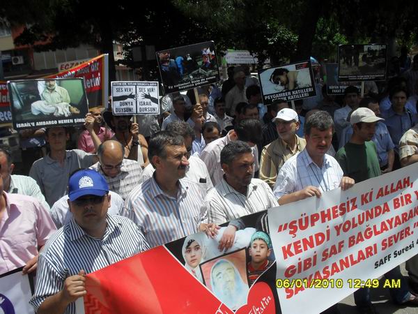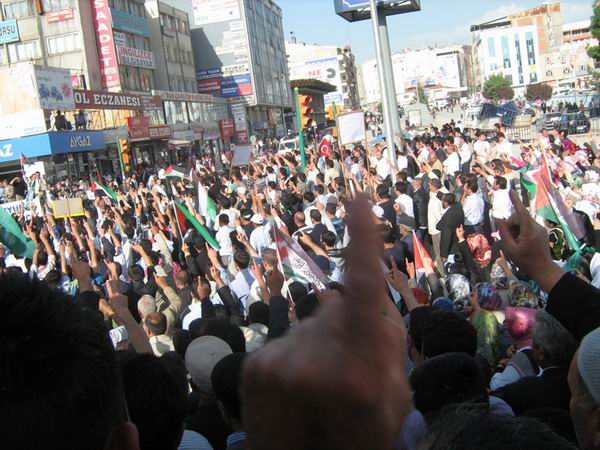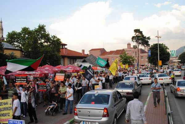 Furkan Eğitim Vakfı önderliğinde düzenlenen mitinge yaklaşık 2 bin kişi katıldı. İstasyon meydanında gerçekleşen mitingde Siyonist İsrail aleyhine sloganlar atıldı. Grubun meydana sığmaması üzerine yolu trafiğe kapamak isteyen kalabalığa polis biber gazı sıkarak müdahale etti.