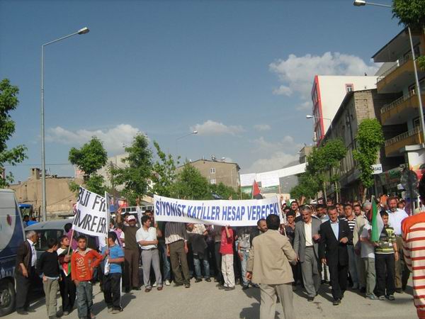 İsrail terör devletinin uluslar arası hiçbir hukuk tanımadan masum insanlara karşı saldırıda bulunması bütün dünyada olduğu gibi, Van'da da protesto edildi. İkindi namazından sonra bir araya gelen Müslümanlar, İskele caddesinden yürüyüşe geçerek Sıhke caddesinden şehrin ana merkezine geldi. Açılış konuşmasını yapan Bahadır Tok, İsrail'in caniliklerine ve uluslar arası hukuku çiğnemedeki pervasızlığına değinerek, Müslümanların bu zulüm karşısında sessiz kalmaması gerektiğini belirterek, Vanlıların iki gün boyunca bu hassasiyetini göstermek için meydanlarda olduğunu belirtti. Kur'an okunuşundan sonra duygusal bir konuşma yapan Osman Gülaçar, Müslümanların duygularını tercüman olmaya çalıştı. Atılan sloganlarla tepkisini dile getiren kalabalığa hitap eden konuşmacılardan biri de Filistin Dostları adına kürsüye gelen Fuat Değer oldu.