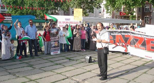 Tokat'ta Gazze yardım filosu için eylemler kesintisiz devam ediyor. Katil İsrail'in Gazze filosuna saldırmasıyla meydanlara çıkan Tokatlı Müslümanlar iki gündür öğleden sonra başlattıkları eylemliliklerini cumhuriyet meydanında akşam geç saatlere kadar sürdürüyorlar.