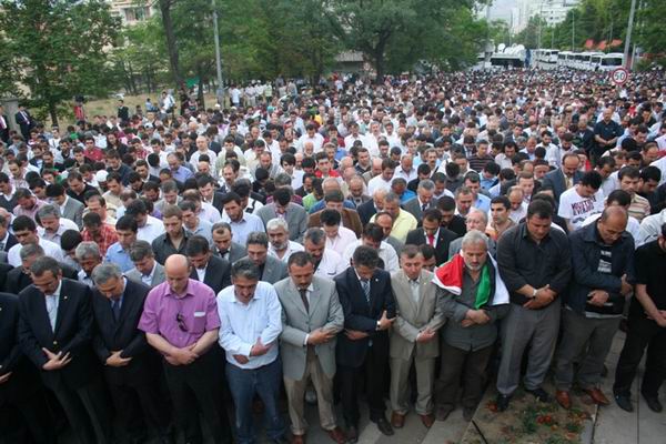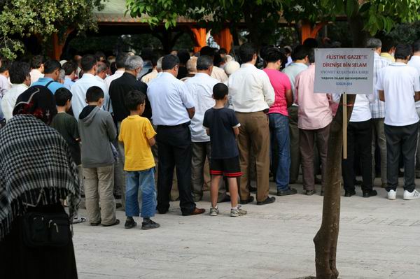 Gazze'de şehid olan kardeşlerimiz için Antalya'da gıyabi cenaze namazı kılındı. Muratpaşa Camisinde kılınan namaza çok sayıda Antalyalı katıldı. Cenaze namazından sonra şehidler için dua edildi. Topluluk daha sonra sloganlar atarak dağıldı.