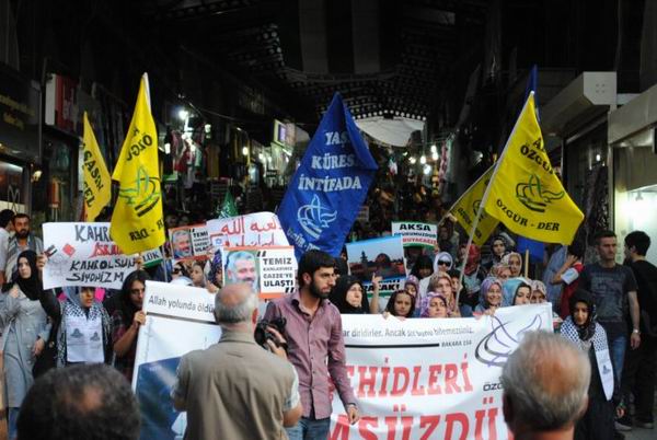 'Katil İsrail ortadoğu'dan defol', 'Zulme karşı direneceğiz', 'Rotamız insanlık yükümüz direniş' gibi sloganlar eşliğinde devam eden yürüyüşe sokaktan geçenlerin katılımı ve destekleri yoğundu. Yürüyüşün sonunda ise Özgür-Der üyelerinden Mustafa Taşpınar Basın açıklamasını okudu.