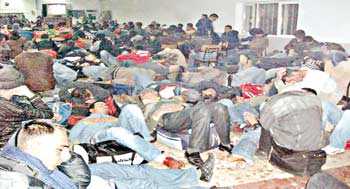 Akit Gazetesi, kendileri ordu evlerinde lüks içinde yaşarken erlere köle muamelesi yapan zihniyeti deşifre etmeye devam ediyor. Önceki gün yayınladığımız 'Mehmetçiğe beton yatak' haberinde Diyarbakır 7. Kolordu Komutanlığı Kabul ve Toplama Merkezi'nde askerlerin beton zemin üzerinde yatırıldığını ve bu durumun komutanlar tarafından umursanmadığını gündeme getirmiştik. Haber sonrası gazetemize gönderilen bir mailde ise Van Jandarma Asayiş Kolordu Komutanlığı'nda bulunan Kabul ve Toplama Merkezi'nin durumunun daha vahim olduğu iddia edildi. Vatani görevini henüz tamamlamış erin delil olarak gönderdiği fotoğrafta usta birliğine teslim olmak için konvoy bekleyen yüzlerce erin asker gazinosunda beton zemin üzerinde uyumaya çalıştığı, şanslı olanların ise sandalyede uyuduğu açıkça görülebiliyor. Kendisinin burada görev yaptığını belirten er, dağıtım dönemlerinde KTM'nin ağzına kadar dolduğunu, koğuşlarda birleştirilen ranzalarda üçerli yatıldığını, geriye kalan yüzlerce askerin ise bir kısmının gece asker gazinosunda, bir kısmının da dışarıda yerde yattığını belirtiyor. Askerlerin beton zeminde yattıkları için daha birliklerine teslim olmadan hastalandıklarını ifade eden asker, depolarda yüzlerce battaniye ve yatak olmasına rağmen erlere verilmediğini, depolarda çürütüldüğünü söylüyor.