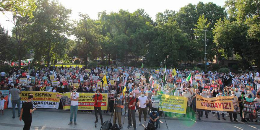 Mısır'da darbeci Sisi'nin emriyle gerçekleştirilmesi planlanan idam kararlarını protesto etmek için Mısır Halkıyla Dayanışma Platformu adı altında bir araya gelen göstericiler Fatih'teki Saraçhane parkında protesto eyleminde bulundu.