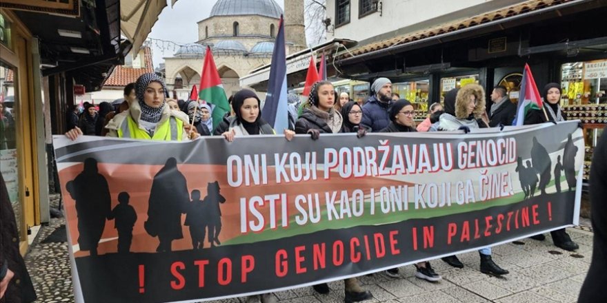 Bosna Hersek'in başkenti Saraybosna'da yüzlerce kişinin katılımıyla Filistin'e destek gösterisi yapıldı.