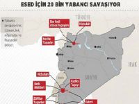 Suriye'de Esed rejimi saflarında yaklaşık 20 bin yabancı savaşıyor. Yabancı savaşçılar İran, Lübnan, Irak, Afganistan ve Rusya'dan geliyor.