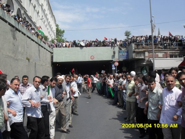 Yürüyüş esnasında "Siyonist Kuşatmaya Karşı Yaşasın İslami Dayanışmamız!", "Siyonist Elçilik Kapatılsın!", "Şehidimiz Cevdet Yolun Sürecek!" vb yazılı pankartlar taşındı.