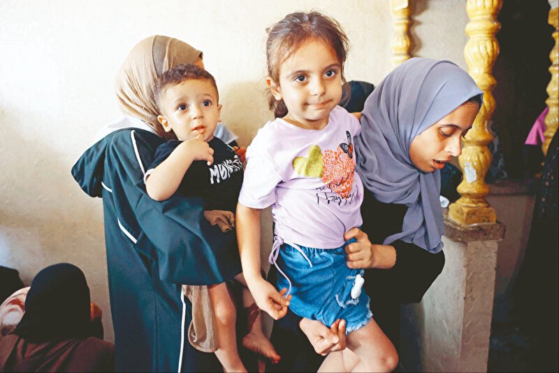 Enes el-Şerif'in yakınları, 11 Ağustos 2025'te Gazze Şehri'ndeki cenaze töreninde 15 aylık oğlu Salah ve 4 yaşındaki kızı Şam'ı taşıyor.