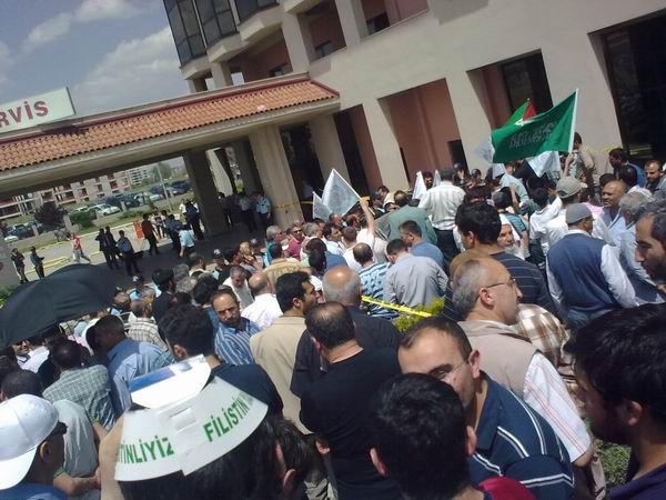 Ankara Atatürk hastanesinde, İsrail'deki hastanelerden bugün getirilen üç hasta karşılandı. Önce şehit olduğu daha sonra beyin ölümü gerçekleştiği bildirilen Uğur Süleyman Söylemez'in, doktorlara tepkiler verdiği bilgisinin topluluğa ulaşması, sevinçli bir ortam doğurdu. Polisin hastane içi hasta ziyaretine müsaade etmediği yüzlerce kişi, Ankara Atatürk hastanesi önünde Siyonist İsrail aleyhine sloganlar atarak olaysız dağıldı.