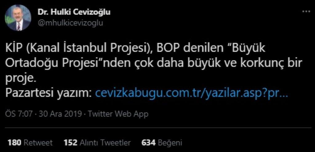 Muhalefetin en sık başvurduğu tartışmalardan birisi olan Kanal İstanbul hakkında ‘bir Atatürkçü olarak’ desteğini açıklayan Cevizoğlu’nun daha önce aynı konuda yaptığı paylaşımlar ise kafaları biraz karıştırdı. 2019’da yazdığı yazısını sosyal medyada şöyle duyuruyor.