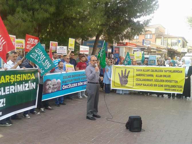 Biz bugün burada, yapılan bu zulme seyirci kalmadığımızı haykırarak Müslüman kardeşlerimize karşı sorumluluğumuzu yerine getirmek için toplandık. Bütün dünyanın gözü önünde yapılan bu haksız yargılamaların hiçbir meşru tarafı yoktur. Seçimle işbaşına gelen meşru yönetimin darbeyle devrilmesinin ve haklarında idam kararının verilmesinin uluslararası hukukla bağdaşmadığını herkes bilmektedir. İslami hareketlere karşı düşmanlık yürüten güçlerin ne kadar hukuksuz, ne kadar vicdansız ve vahşi olabildikleri Mısır darbe hukukunun kararlarıyla bir kere daha ispatlanmıştır.