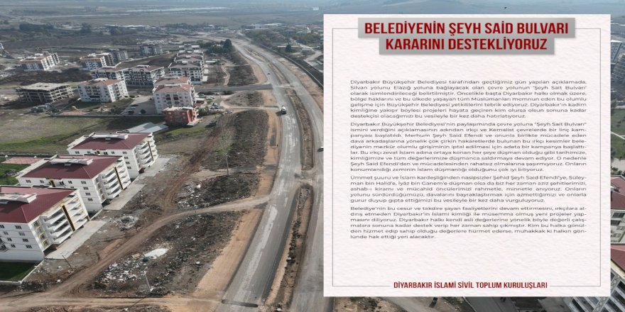 Diyarbakır İslami STK'lar: Belediyenin "Şeyh Said Bulvarı" kararını destekliyoruz
