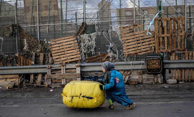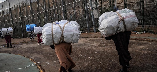 Melilla'daki gümrüksüz turnikelerden geçirilen Avrupa ürünlerini Afrika'ya taşıyan Faslı kadınlar, İspanyolca 'Mule-Katır' adıyla çağrılıyor.