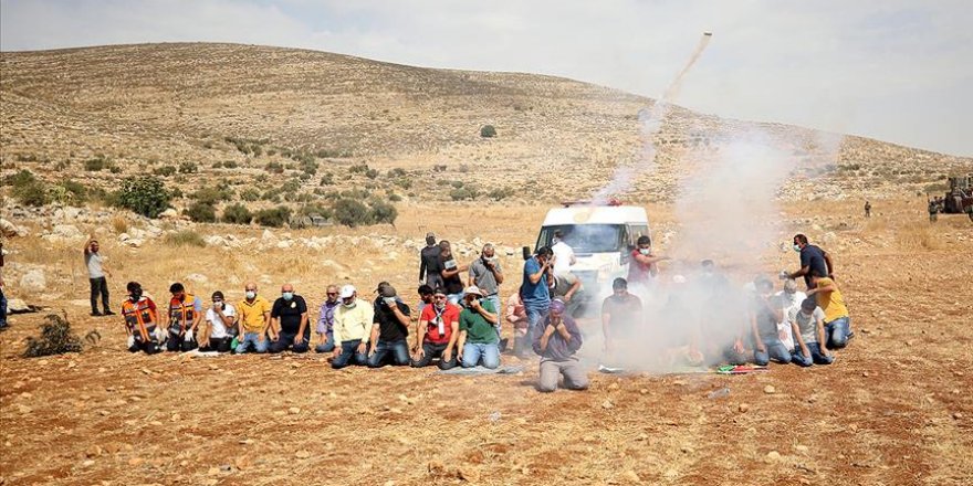 Siyonist İsrail güçleri Batı Şeria'da namaz kılan Filistinlilere göz yaşartıcı gazla saldırdı