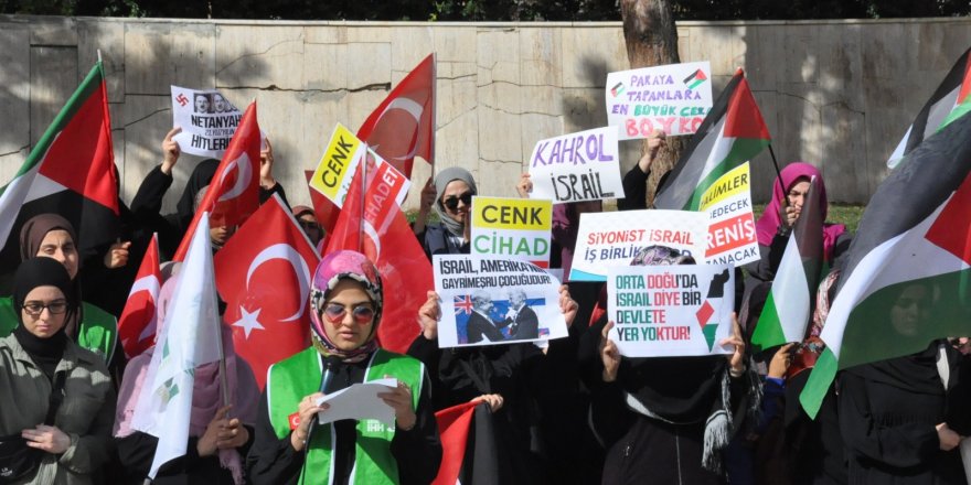 Yozgat Genç İHH İnsani Yardım Vakfı Hanımlar Birimi ve Kadın Kolları tarafından yapılan açıklamada, “Bizler vicdan sahibi Sivil Toplum Örgütlerinin Kadın Temsilcileri ve anneler olarak İsrail’in Gazze Şeridi’nde 15 gündür sürdürdüğü katliama ‘DUR!’ demek için buradayız. Bizimle aynı duyguları paylaşan herkesi İşgalci İsrail’in Gazze Şeridi’ne yönelik saldırılarını bir an önce durdurması için harekete geçmeye davet ediyoruz. Apartheid rejimi, yaklaşık yüz yıldır Filistinlilerin topraklarını işgal ederek defalarca katliam gerçekleştirdi. İki milyondan fazla insanın yaşadığı Gazze Şeridi’ne ise 17 yıldır abluka uygulayarak bölgeyi adeta bir toplama kampına çevirdi. Gazze Şeridi’ne yönelik yıllardır süren bombalı saldırılarda sahilde piknik yapan aileleri, sokakta oyun oynayan çocukları, hastanelerde tedavi bekleyen hastaları, ibadethaneleri, insanın en güvenli sığınağı olan evlerinde aileleri, en çok da kadın ve çocukları hedef aldı. Ve maalesef Gazze’de hiçbir yer güvenli değil. Gazze’de devam eden saldırılarda okullar, camiler, hastaneler vurularak dünyanın gözü önünde savaş suçu işleniyor. İşgalci İsrail Yönetimi askerlerine yargılanmayacaklarının güvencesini vererek bunun yolunu açtı ve tam 15 gündür bütün uluslararası hukuk kurallarını ve insanlığı ayaklar altına aldı. Bu sürecin son halkası olarak Gazze Şeridi’nde gerçekleştirdiği katliamlarda yine yüzlerce kadın ve çocuk işgalcilerin açık hedefi oldu. 17 Ekim Salı gecesi İsrail’in El-Ehli Baptist Hastanesi’ni bombalaması sonucu büyük çoğunluğu çocuk ve kadınlardan oluşan 500’den fazla insan katledildi. İşgalci İsrail, daha güvenli olduğunu düşündükleri için sığındıkları hastanenin bahçesinde oyun oynayan, yemek yiyen ve savaş ortamında yaşama tutunmaya çalışan masum çocuk ve kadınları vahşice katletti. Anneler ve babalar çocuklarının paramparça olan cesetlerini toplayıp poşetlere koyarak defnetmek zorunda kaldı. Filistin’den her geçen dakika acı haberler alıyoruz. Şu ana kadar işgalci İsrail’in Gazze Şeridi’ne gerçekleştirdiği saldırılarda binden fazlası çocuk olmak üzere 4 binden fazla kişi öldürüldü. Gazze Sağlık Bakanlığı, işgalci İsrail saldırılarında ölenlerin yüzde 70'inin kadın, çocuk ve yaşlılardan oluştuğunu ve bombalanan bina enkazında kalan bin 300 kişiden haber alınamadığını, bunlardan 600'ünün yine çocuklardan oluştuğunu açıkladı. Tablo çok acı. İşgalci İsrail her 15 dakikada bir, üç çocuk katlederek Gazze Şeridi’nde, dünyanın gözü önünde soykırım uyguluyor. Bizler vicdan sahibi kadınlar ve anneler olarak, dünya liderlerini, uluslararası sivil toplum kuruluşlarını, Birleşmiş Milletler’i, Avrupa İnsan Hakları Mahkemesi’ni, Uluslararası Ceza Mahkemesi’ni, İslam İşbirliği Teşkilatı’nı, Arap Birliği’ni, siyasi aktörleri ve kamuoyunu işgalci İsrail’in Gazze Şeridi’ne uyguladığı soykırımı durdurması için harekete geçmeye ve işgalci İsrail’e yaptırım uygulamaya davet ediyoruz. Biz, Filistinli kadın ve çocukların yanında olduğumuzu göstermek adına şu andan itibaren saat 16.00’a kadar bu alanda sessiz bir oturma eylemi başlattığımızı kamuoyuna duyuruyoruz. Vicdan sahibi herkesi Filistinli kadın ve çocuklara destek vermeye ve onlara sahip çıkmaya davet ediyoruz” ifadelerine yer verildi.
