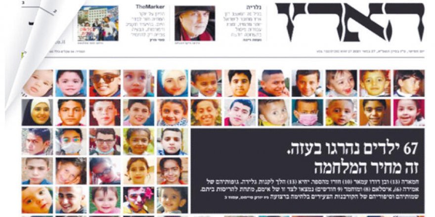 Bu haftanın en dikkate değer gelişmelerinden biri, İsrail’in önde gelen gazetelerinden Haaretz’in 27 Mayıs Perşembe günkü manşetiydi. Gazetenin İbranice nüshasında başlık şöyleydi: “Gazze’de 67 çocuk öldürüldü. İşte savaşın bilançosu.” İsrail tarafından ramazanın son günlerinde başlatılan ve 21 Mayıs’taki ateşkese kadar tam 11 gün süren yoğun Gazze saldırılarında katledilen çocukların fotoğraflarını birinci sayfasına taşıyan Haaretz, haliyle büyük bir tartışmanın fitilini ateşledi.