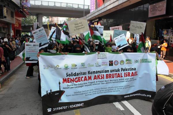 Gazze'ye insani yardım götüren Mavi Marmara gemisine saldırarak tüm dünyanın tepkisini çeken İsrail, kozmopolit ve barışçıl vatandaşları ile bilinen şehir-devlet Hong Kong'da da protesto edildi.