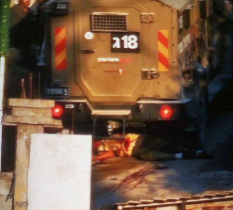 Siyonistlerin işgal altındaki Batı Şeria'nın kuzeyindeki Cenin kentinde düzenlediği baskında, katlettiği Filistinli adamın üzerinden askeri araçla geçti.