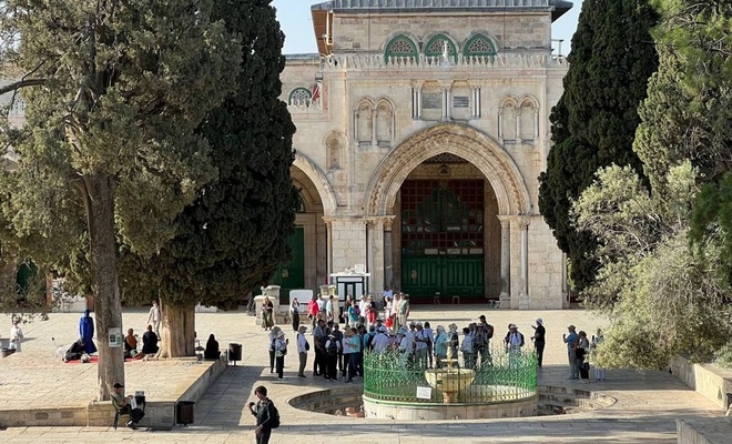Yahudi gasıplar, Talmudik ritüellerini gerçekleştirmek için Mescid-i Aksa'nın güneybatısındaki El-Meğaribe (Fas) Kapısı'ndan Harem-i Şerif'e girdi.