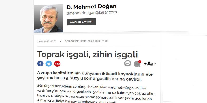 D. Mehmet Doğan, Lozan sonrası şekillenen siyasi tabloyu mercek altına aldığı yazısında, güya toprağı işgalden kurtarmak için emperyalizme teslimiyet gösterenlerin zihinsel planda nasıl işgale uğradıklarının trajikomik örneklerine dikkatleri çekiyor.