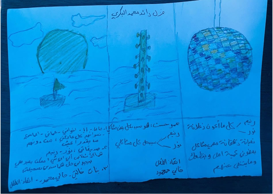 Bu oturumlarda, gelecekte, Filistin'imizde birlikte olmayı hayal etmeyi seviyoruz. Bir ressamın tuvali doldurması gibi, kolektif hayal gücümüzle özlediğimiz toplumun şeklini ve biçimini çiziyoruz. Dayanışma ve sumud dolu hikâyeler anlatıyoruz. Her kaybın derinliğini hissediyoruz. Ağlamaktan, feryat etmekten, şarkı söylemekten, övmekten vazgeçmeyen içimizdeki sesler ve duygularla bağlantı kuruyor ve onları dışsallaştırıyoruz. Daha iyi zamanları, hayallerimizi gerçekleştirmeyi ve mutlu anları paylaşmayı hayal ediyoruz. Birlikte ıstıraptan, yıkımdan ve kanlı acıdan kaçmak için bir alan oluşturduk.