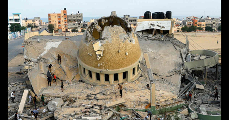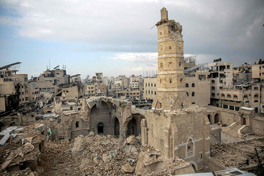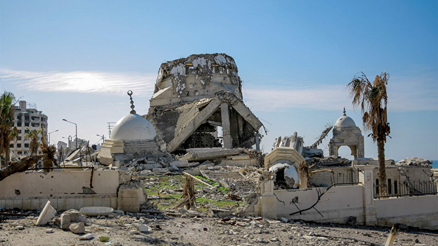 Gazze'deki Filistinlilerin "Küçük Mescid-i Aksâ" olarak da tanımladığı cami, İsrail tarafından hedef alınarak büyük oranda yıkıldı.