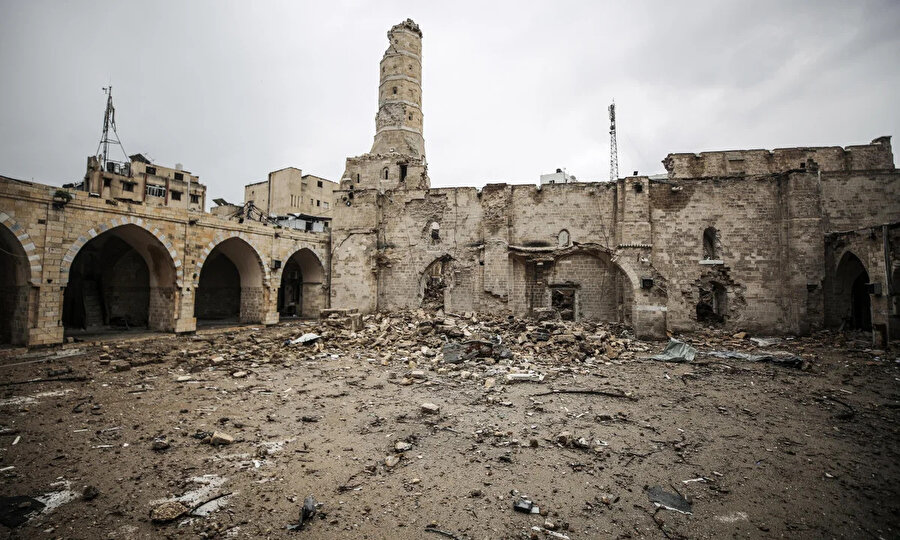 Yaklaşık 546 metrekare büyüklüğündeki bu tarihî cami de İsrail saldırısında tamamen tahrip edildi.